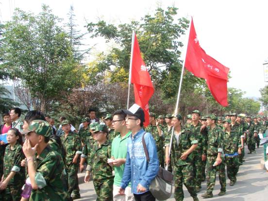 916日上午,我系2013级新生在副经理、员工军训和入学教育工作领导小组副组长魏书堂,军训团领导和全体教官的带领下,顺利完成了军事化训练的重点项目——行军拉练。