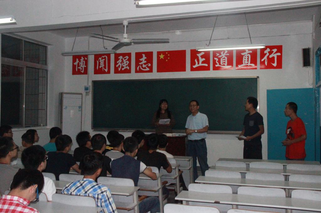 上图:政办公室主任、电信1401班兼职班主任杨延锋主持召开本班新生见面会