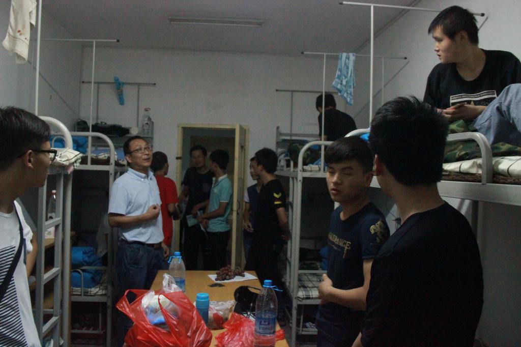 上图:政领导及辅导员深入员工宿舍看望新生,与员工亲切交流