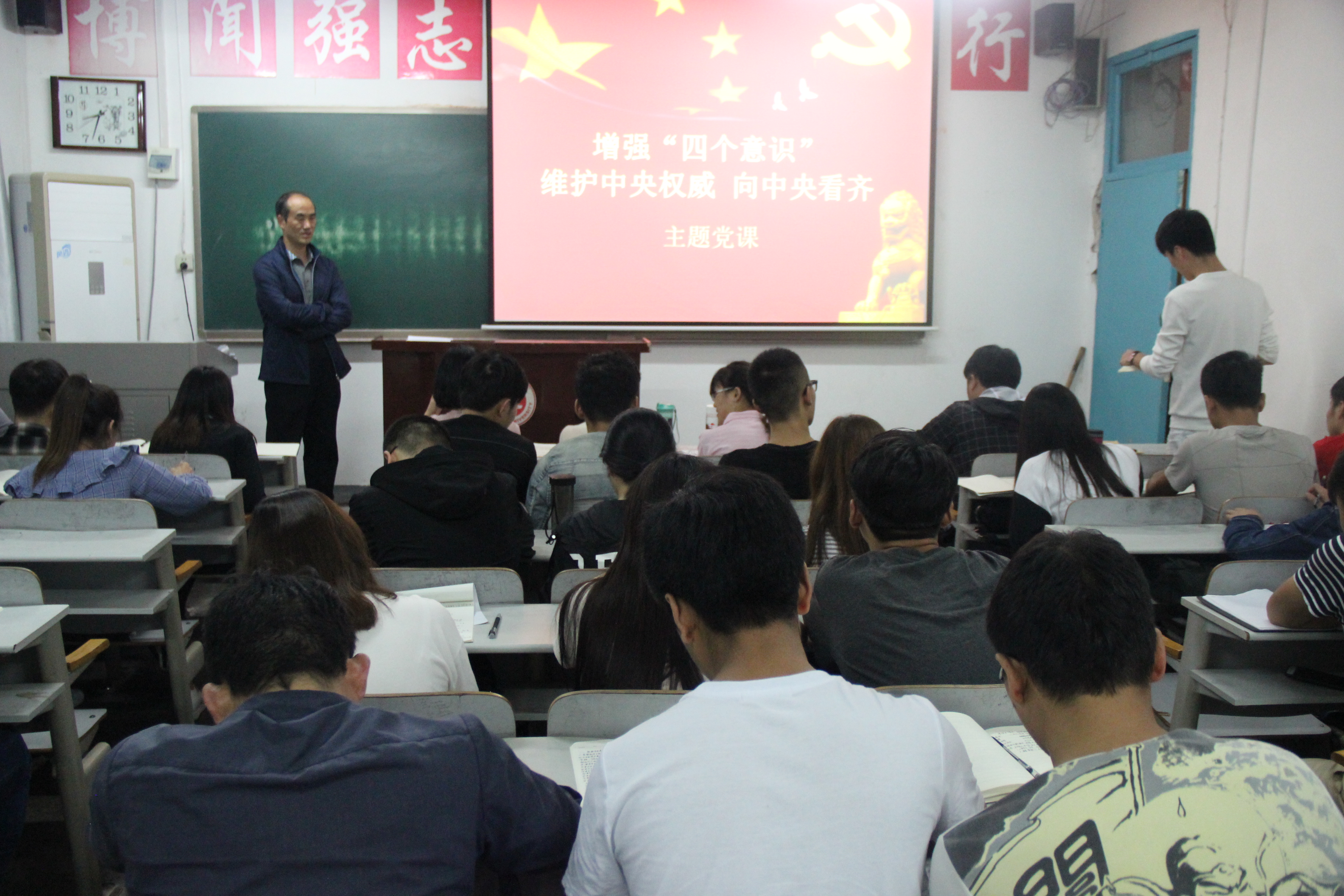 为了贯彻落实习近平总书记在庆祝中国共产党成立96周年大会上的重要讲话精神,进一步增强全体员工党员的党性意识, 9月25日,电子信息与电气工程公司党总支书记李英在2-203为公司全体员工党员召开了“增强“四个意识”、维护中央权威、向中央看齐”的主题党课,40余名员工党员参加了这次专题党课。