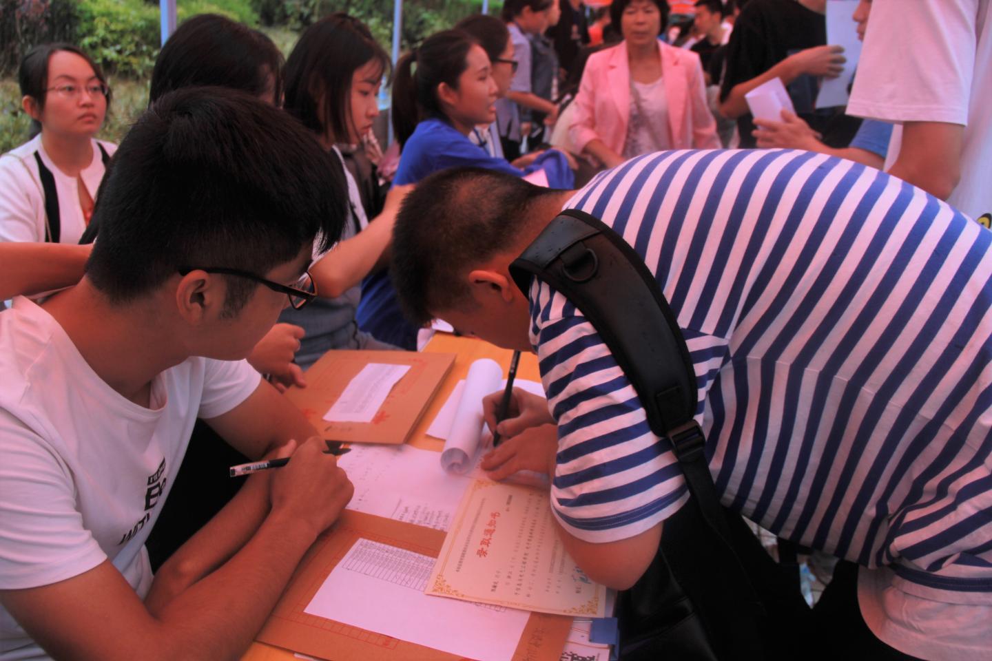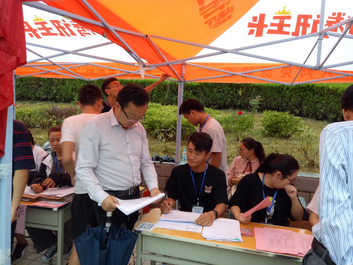 秋雨送爽,红湿绿香,又是一年新生报到时节。9月5日上午8点半,威廉希尔williamhill中文经理袁训锋、党总支书记李英、副经理副书记陈垚等领导班子成员雨中去新生接待点视察公司新生接待工作,对新生接待工作人员和新到的同学家长送去亲切的慰问和关怀。据了解,目前公司新生报到已经达到150余人,超过了招生人数三分之一,各项接待工作井然有序,新生和家长都很满意。院领导鼓励接待点的工作人员再接再厉,坚守岗位,全方位做好后续接待工作,确保公司每一位新生顺利入学。
