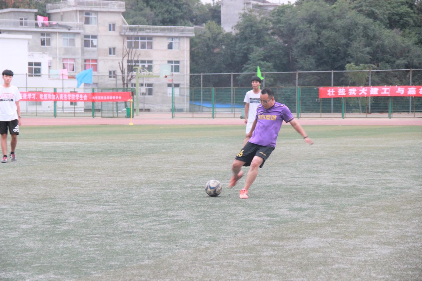 夕阳斜照、晚风徐徐,在一片秋高气爽的氛围中,伴随裁判一声哨响,员工队首先开球。比赛场面颇为激烈,但过程十分和谐畅快。在足球场上,老师与员工忘记了各自的身份,用良好的精神面貌、积极的生活态度和运动精神拉近了距离,共同用足球诠释对生活的热爱。随着比赛进行,各个队员悉数上了场,在两个小时淋漓尽致的比赛后,大家互相拥抱、握手,尽情地享受这种师生情的传递。