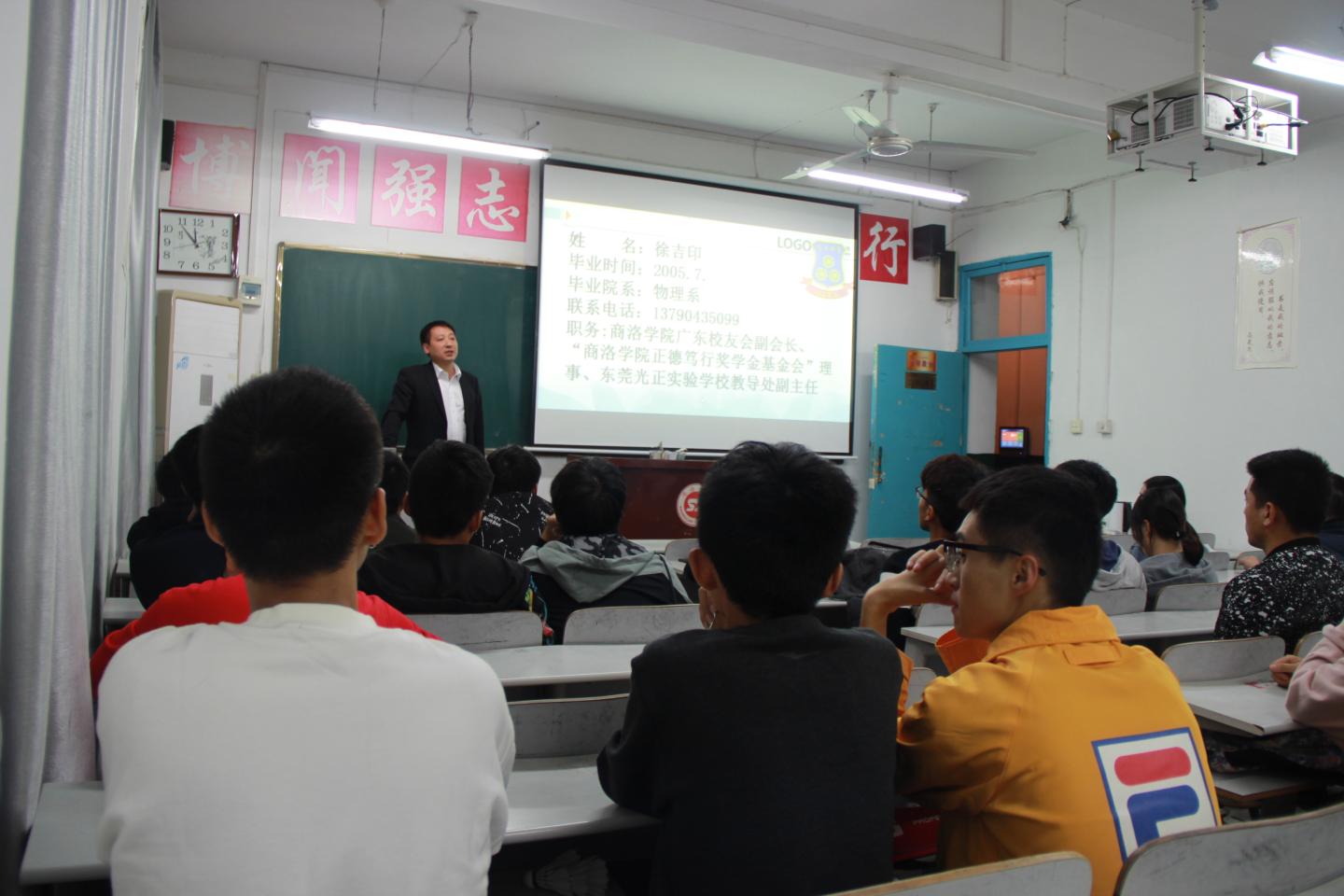 9月29日晚,威廉希尔williamhill中文邀请广东省东莞市光正实验公司的徐吉印来校举办招聘宣讲。本次宣讲会在2#201教室举行,物理学2015级部分同学参与了本次招聘。报告会由公司党总支书记李英主持。