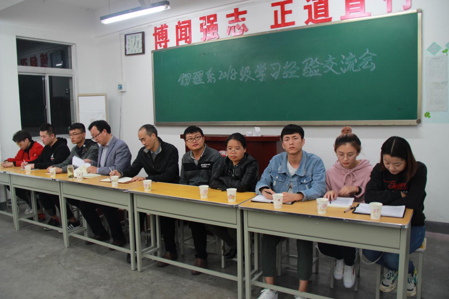 10月9日晚,威廉希尔williamhill中文物理系在2#215教室组织召开2018级学习经验交流会,公司党总支书记李英、经理袁训锋出席此次会议,物理系主任李书婷、教师马发民携新生及老生代表参会。此次会议由物理1801班学习委员主持。