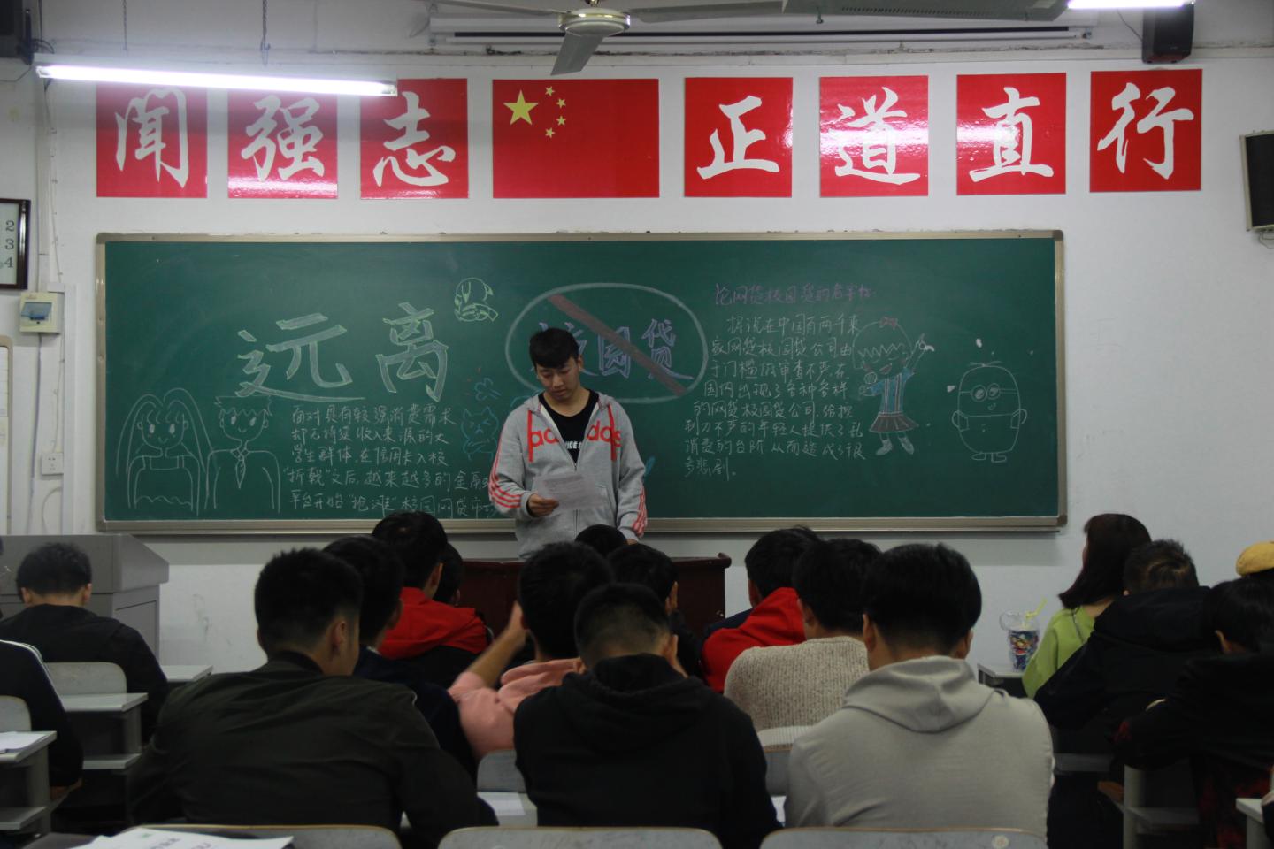 此次班会以宣传为契机、借周日班会时间,由各班班委主讲,向大家讲解了有关贷款的法律法规政策要求,揭露了校园网贷违法的本质。通过ppt等多种方式,让同学们了解到有关网贷和传销的相关案例及视频,以“禁传销、反网贷”为切入点认真分析了传销与网贷对当代老员工及社会的种种负面影响。大家纷纷表示要做到本人决不参与网络借贷,决不参与网络传销,决不参与传销活动,决不参与网络借贷宣传,决不作为“内线”介绍同学参与网络借贷。