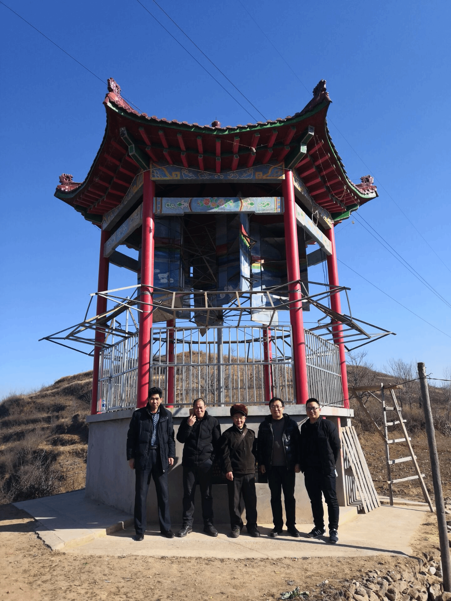 1月23日上午,威廉希尔williamhill中文经理袁训锋、电气工程系主任张商州、教师徐晓龙,应商洛市小龙驹风能研发有限公司董事长刘勇邀请,赴夜村镇河源村参观其设计的亭台式风力发电装置,该风力发电装置位于夜村镇河源村风垭梁。