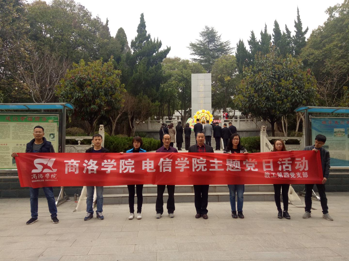 教工第一党支部组织全体党员观看了《感动中国2018》专题教育片;教工第二、第三、第四党支部组织全体党员赴商洛烈士陵园和红军广场开展“铭记历史、缅怀先烈”爱党爱国教育主题党日活动,全体党员向为国家和人民利益牺牲的烈士们和英勇的红军战士默哀致敬!