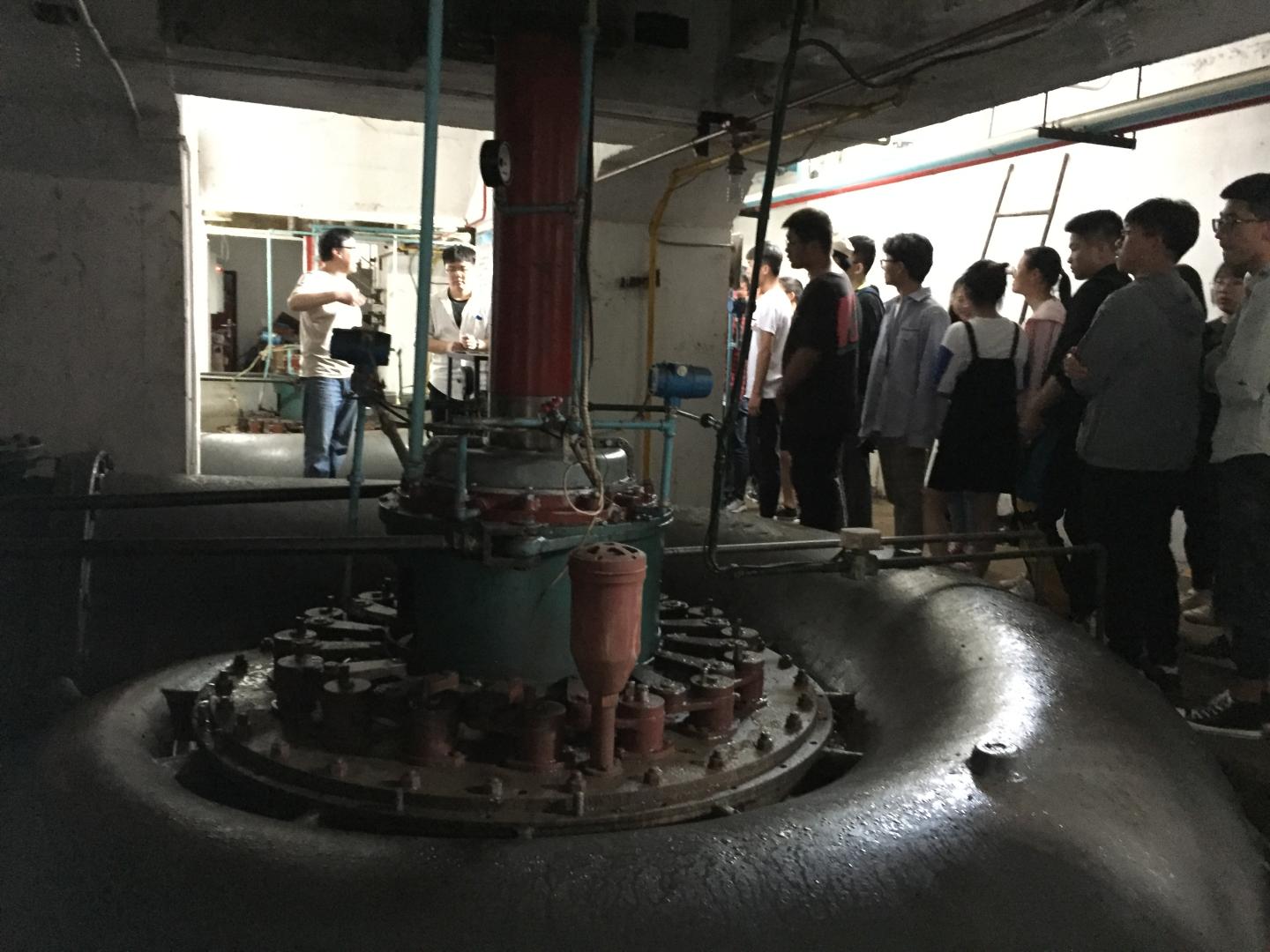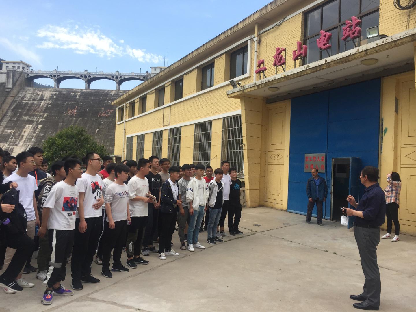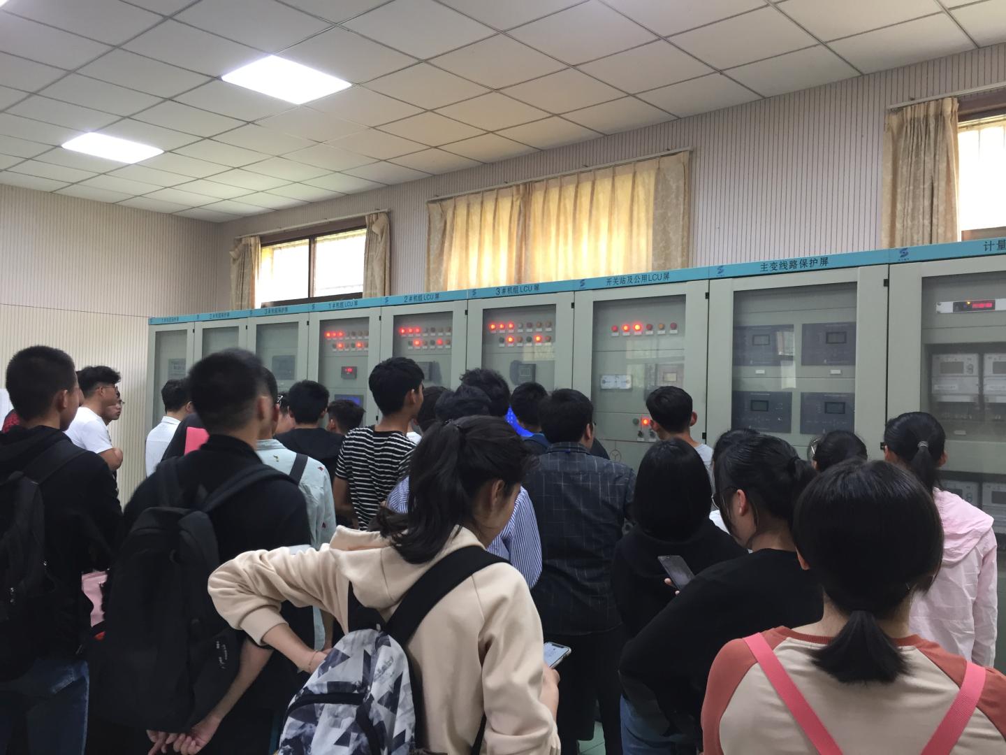 二龙山水电站管理人员对员工的到来表示欢迎,并介绍了二龙山水电站的建设历史、装机容量、电压等级、并网发电等情况。接着同学们进入水电站厂房,其他几位工作人员向同学们讲解了水电站三台水轮机组(3×1800千瓦时)的发电原理、发电量等,并参观了水轮机的地上和地下部分、主控室、微机保护装置、水轮机组保护等,最后由工作人员为员工介绍了电站的并网设备以及并网运行情况。