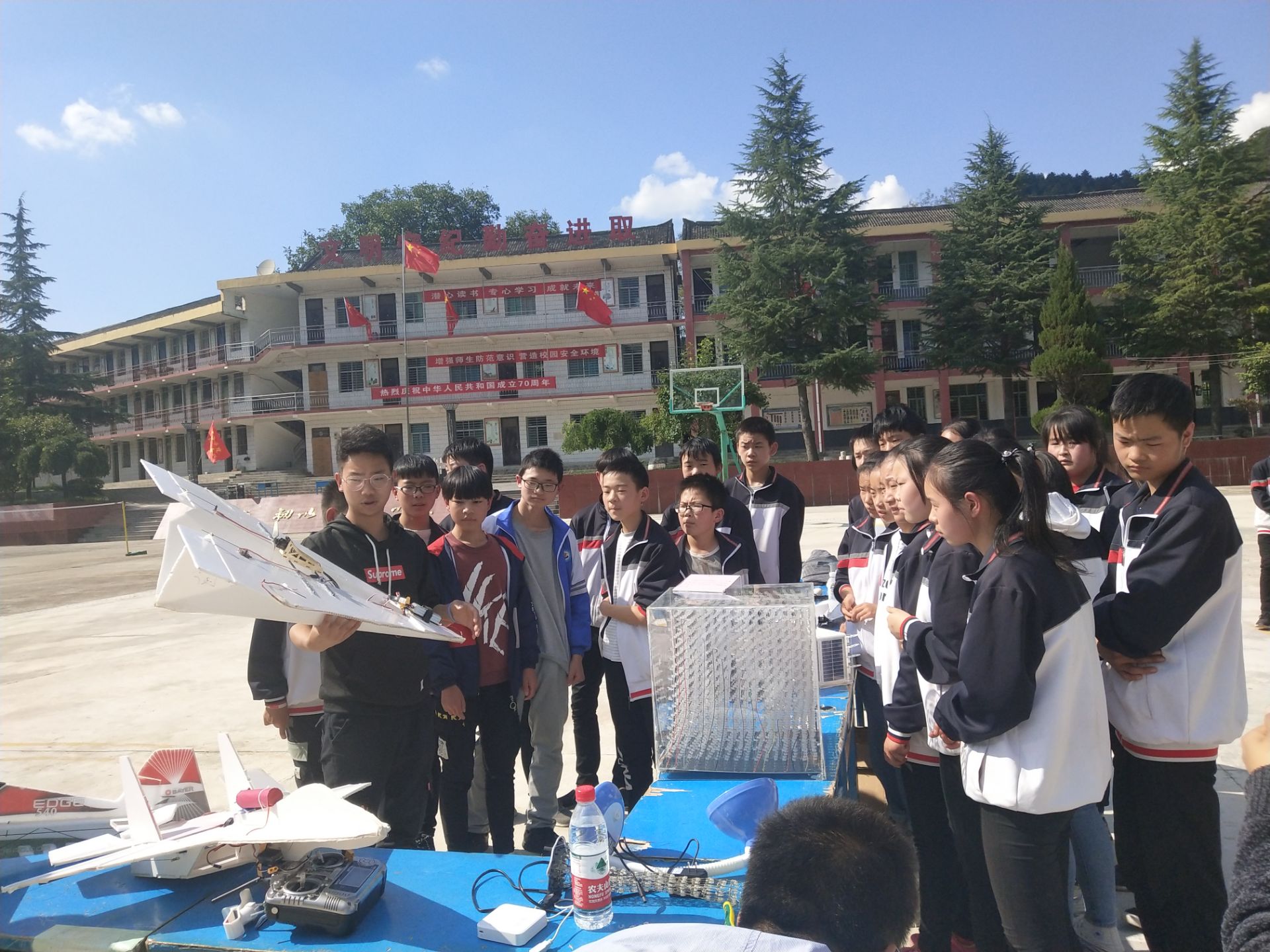 本次“科普大篷车”进校园,分为室内展示和室外展示两部分,在公司的进行半天的展示,全校师生参观了本次展览。现场展出了多种科普仪器以及作品的展板,涉及力学、光学、数学、电磁技术等物理学知识。参观过程整齐有序,大山深处的孩子们看着从未见过的新奇科技设施,时而锁眉、时而大笑,短短几分钟,之前还寂静无比的操场迅速升温。