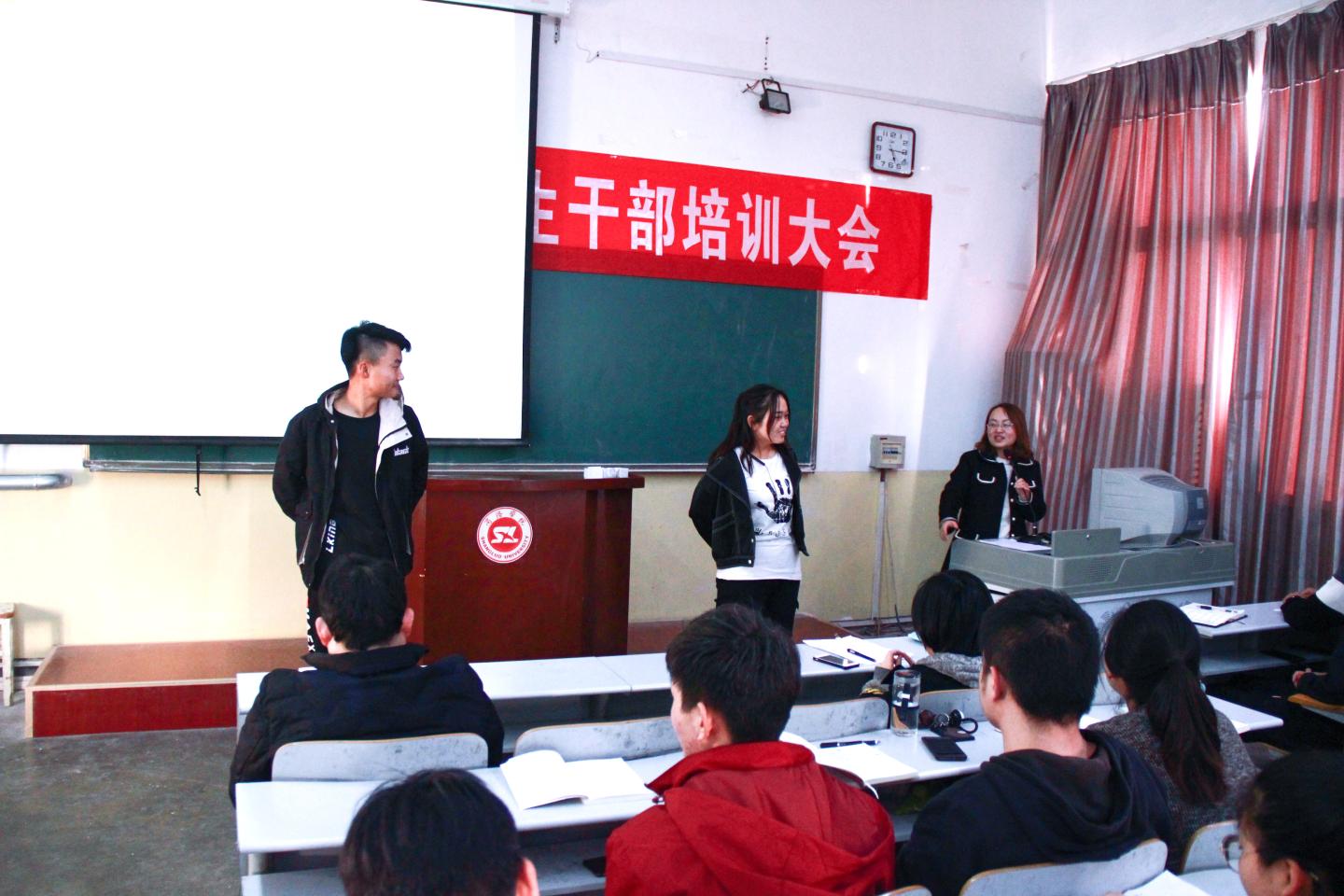 会议伊始,陈倩以“做一名优秀的员工干部”为主题为员工干部做培训。她讲到,作为班团干部在员工工作中要起到带头作用、助手作用、桥梁作用、凝聚作用、服务作用,要严于律己,无私奉献,做好老师的助手、同学的旗帜。沈光美对与会同学提出几点期望,她说到,作为班团干部要树立坚定信念、爱国爱校,要坚持公平公正,增强责任意识、自觉服务同学,要学会明辨是非、拒绝发表不正当言论。