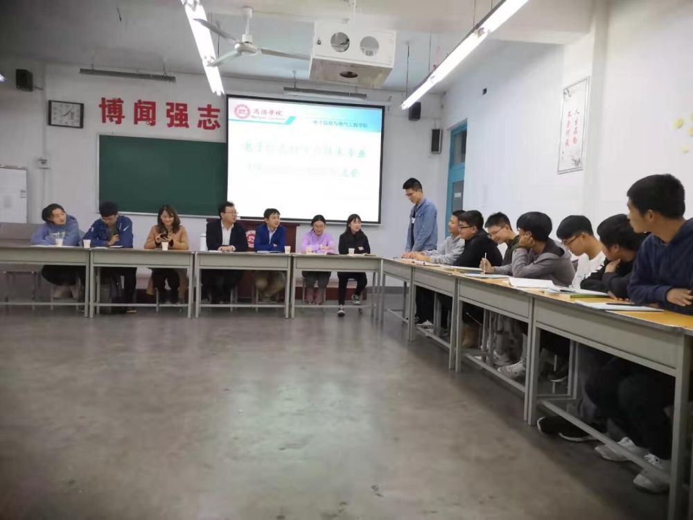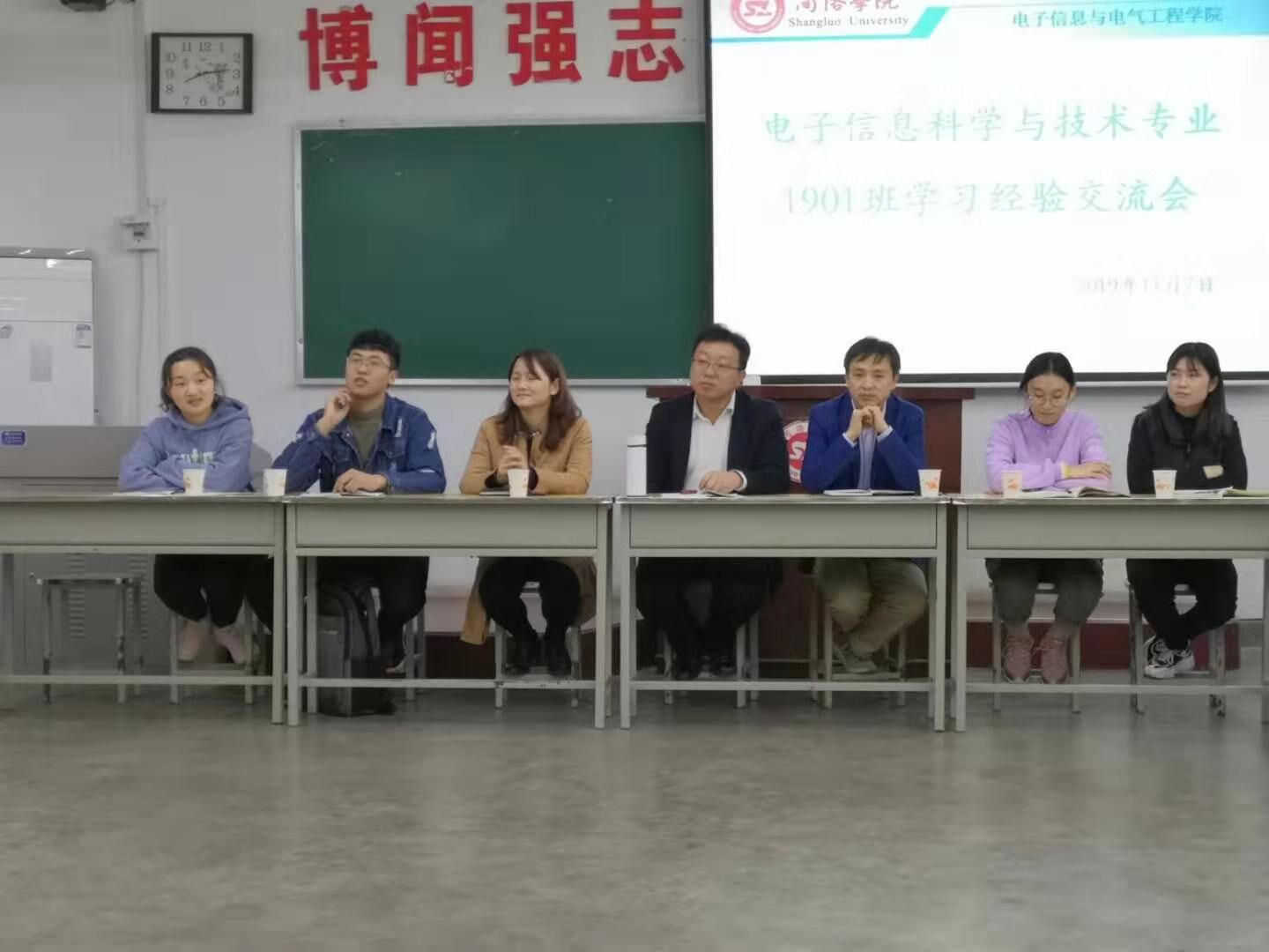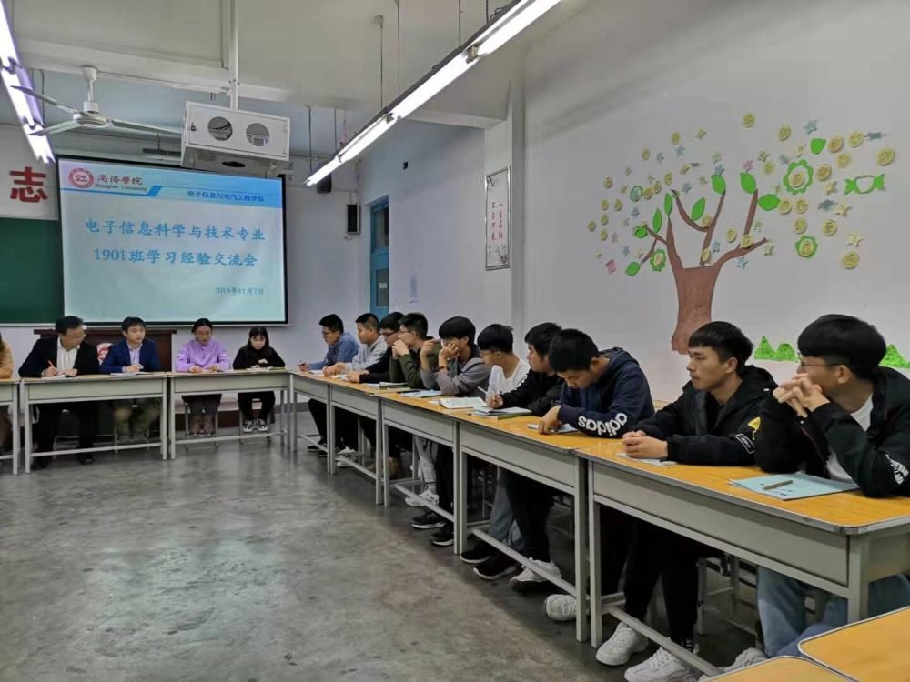 11月7日晚,威廉希尔williamhill中文在2号楼210教室组织召开2019级电子信息科学与技术专业学习经验交流会。威廉希尔williamhill中文经理袁训锋出席了会议。会议由电科1901班主任何建强老师主持。教师王园园、电科1701班冯帆、电科1702班王琳皎、电科1801班许兴及电科1801班刘朋花同学受邀参加学习经验分享,电科1901、1902全体同学参加会议。