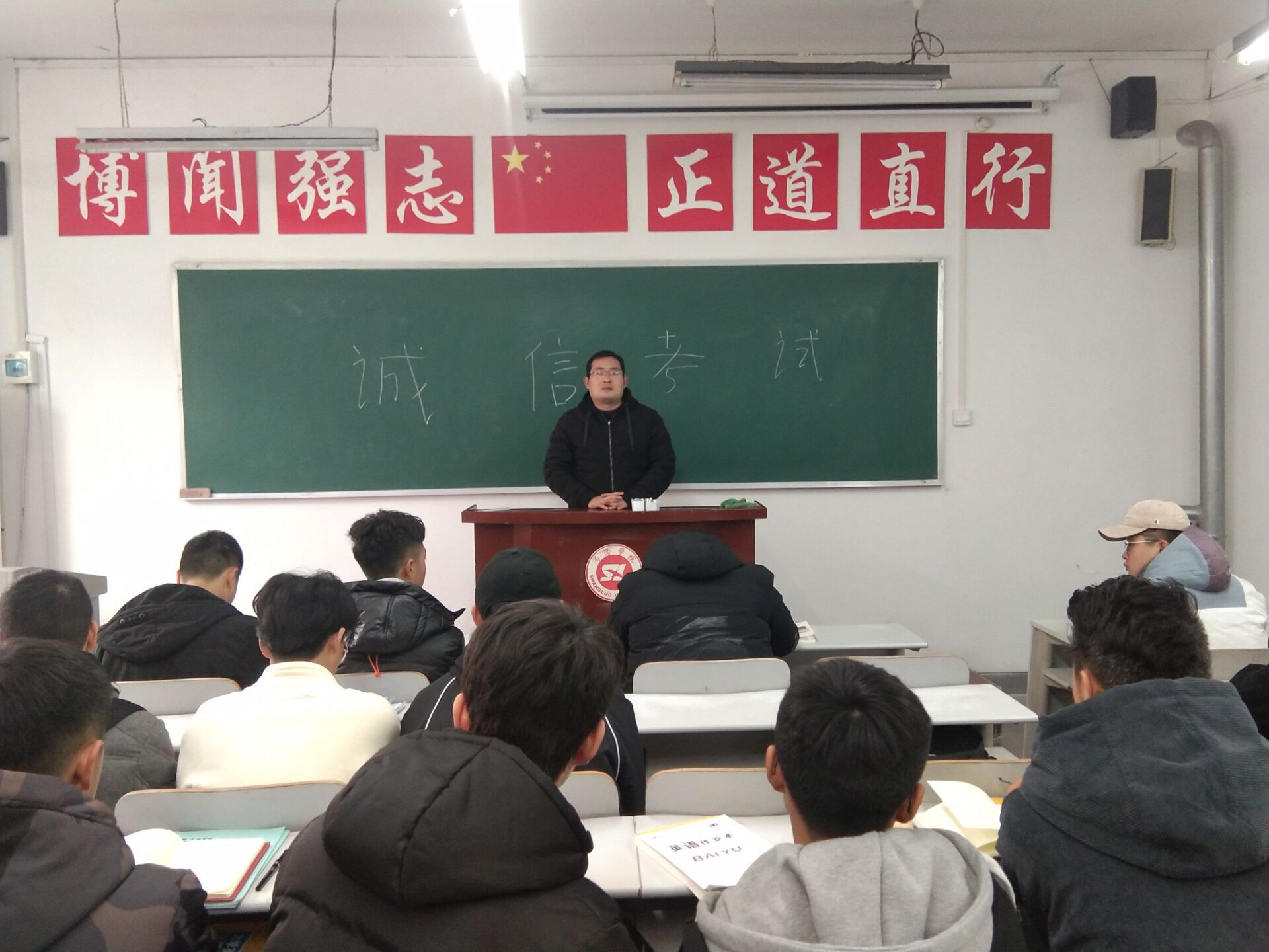 为端正考纪考风,号召同学们在即将到来的大学英语四六级考试和期末考试中牢固树立诚信意识,杜绝考试作弊,12月11日-12日,威廉希尔williamhill中文各班分别在二号教学楼各相关教室召开诚信考试动员会。辅导员沈光美、唐龙龙、任艳和学工办主任陈倩老师分别主持召开各自所带班级的诚信考试动员会。