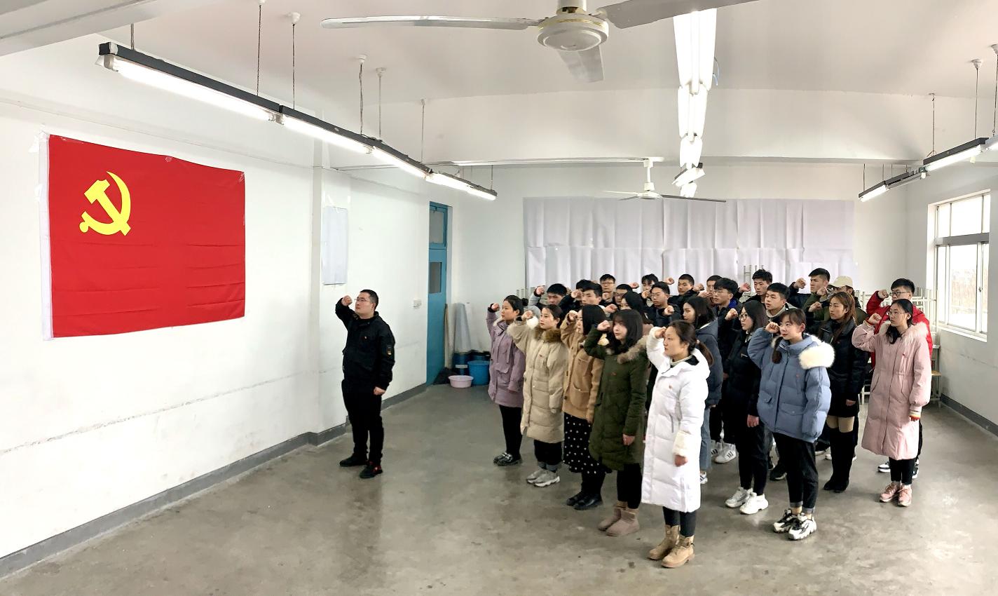 最后,26名预备党员在唐龙龙的带领下面向党旗、举起右拳进行了庄严宣誓。举起的右手是肩负起的重担,口中的誓词是决心的见证,坚定的眼神是忠诚的彰显,誓词的每一个字都刻在了同志们的心里,永不磨灭。入党宣誓仪式在同志们洪亮的声音中落下帷幕。
