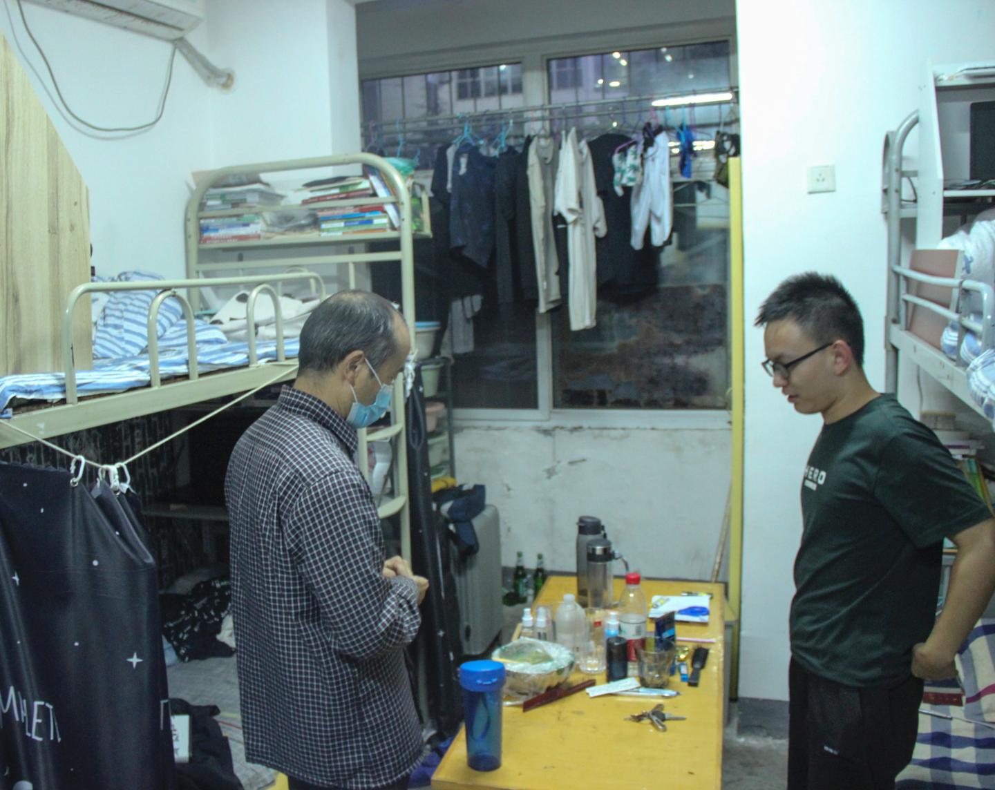 在员工宿舍,李英亲切地和同学们交谈,关心询问同学们近期的学习生活情况,并嘱咐同学们现在新冠肺炎疫情尚未结束,一定要做好个人防护,同时注意节约用水用电,坚决杜绝餐饮浪费现象,切实养成勤俭节约好习惯。辅导员在走访员工宿舍过程中,提醒同学们要注意安全,询问同学们的复习考试情况,嘱咐同学们要搞好宿舍卫生,展现新时代文明老员工的良好形象。
