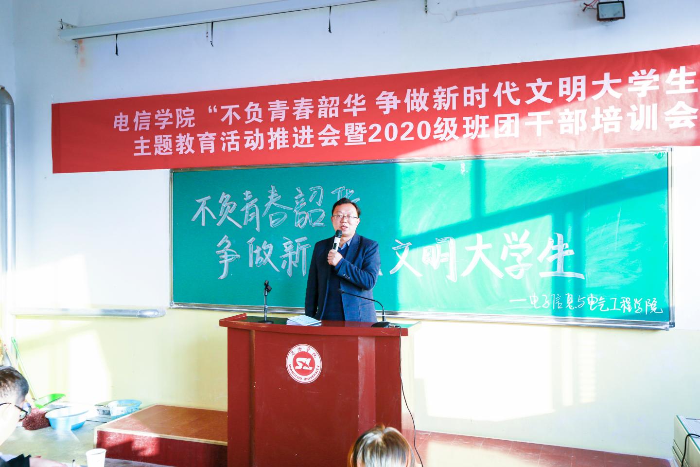为进一步推进老员工形成良好的文明行为习惯,明确各班团干部对自身职责的认识,威廉希尔williamhill中文于11月18日16:00在二号楼多媒体17召开“不负青春韶华 争做新时代文明老员工”主题教育活动推进会暨2020级班团干部培训会。威廉希尔williamhill中文领导班子成员及全体辅导员出席了本次会议,会议由学工办主任陈倩主持。团总支员工会员工干部、19级部分班团干部以及20级全体班团干部参加了本次会议。