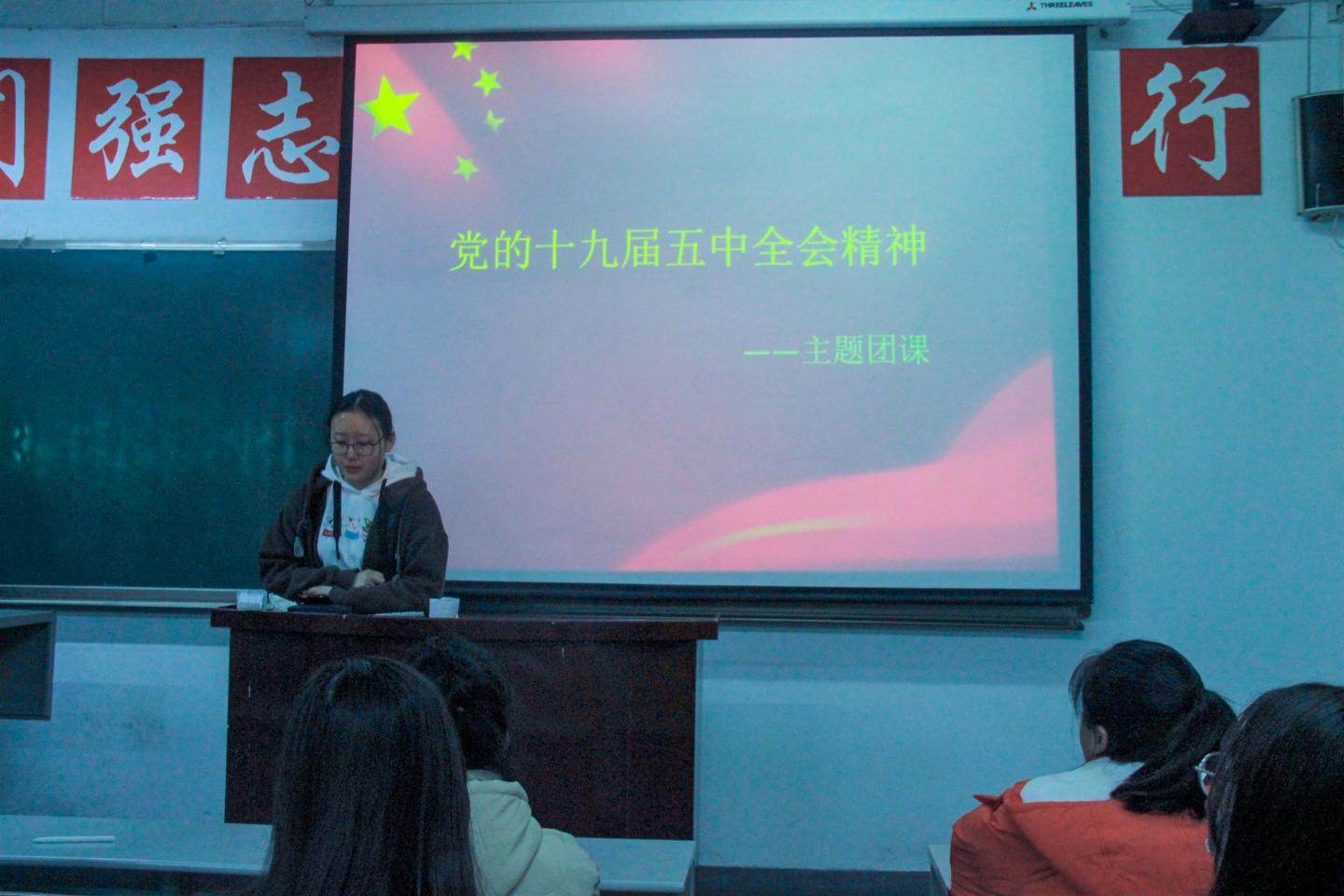 最后,团总支副书记李旭阳总结发言,他指出作为当代青年应砥砺前行,开拓创新,为实现“两个一百年”奋斗目标、实现中华民族伟大复兴的中国梦贡献智慧和力量。