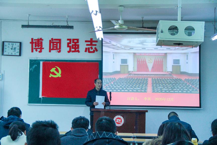 会上,李英讲解了十九届五中全会主要内容并提出要将个人发展融入国民经济、社会发展的第十四个五年规划及二零三五年远景目标建设中来。他强调要把学习宣传贯彻全会精神与贯彻落实习近平总书记关于教育的重要论述结合起来,推动学习走深走实,切实结合工作实际,以五中全会精神为指导,制定好威廉希尔williamhill中文“十四五”及中长期发展规划,探索出一条教育高质量发展之路。