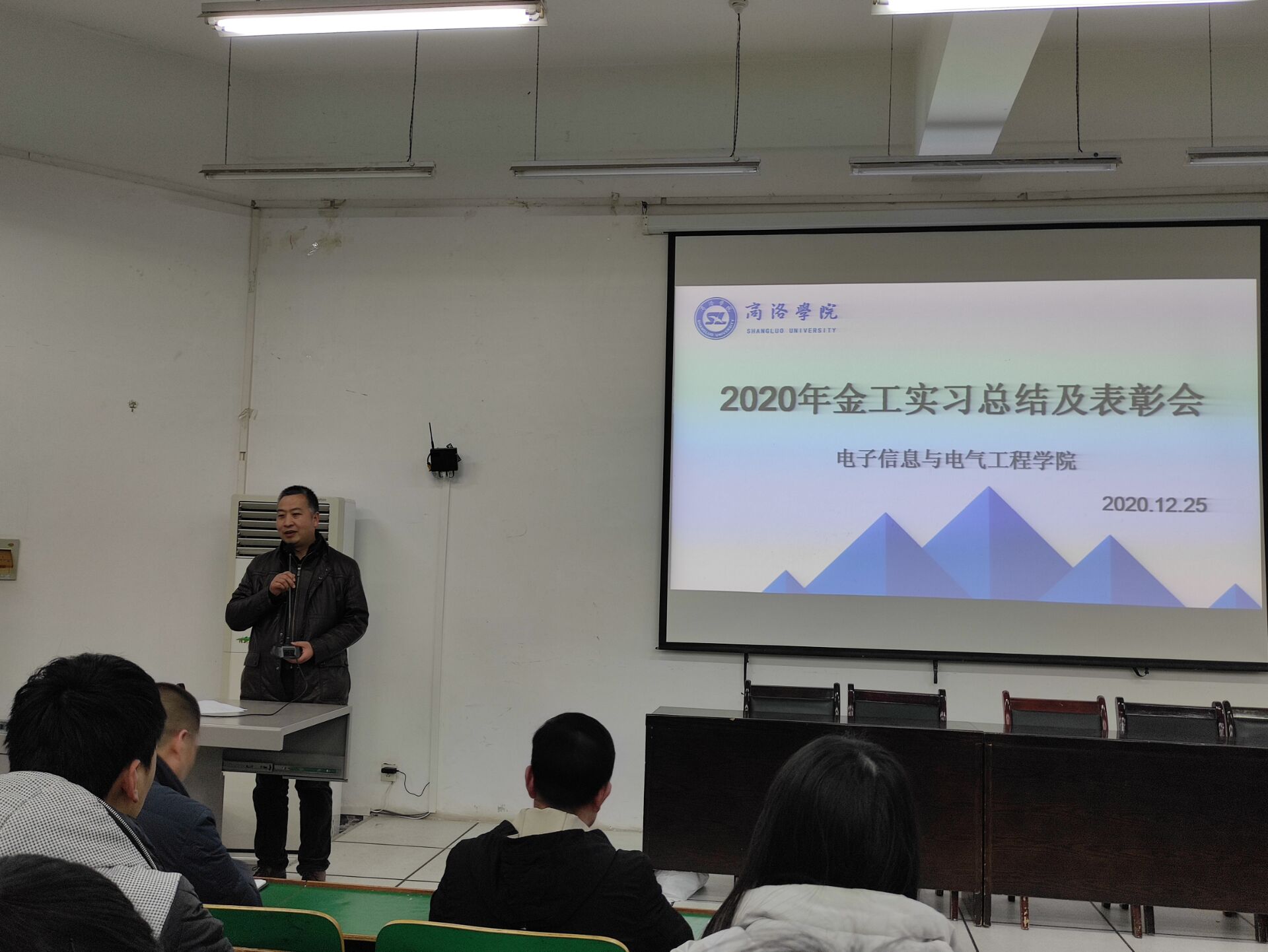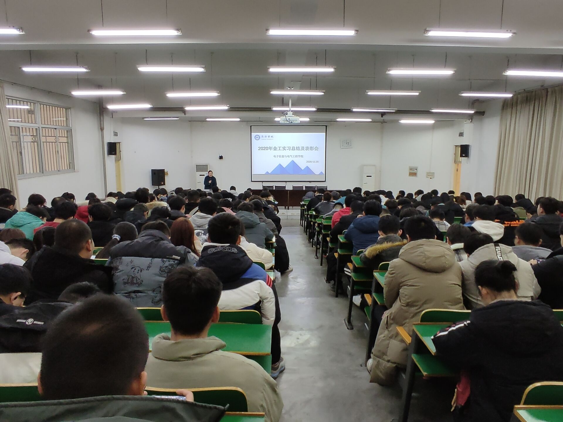 12月25日下午,威廉希尔williamhill中文在公司1号教学楼报告厅一召开了2019级金工实习总结表彰大会。威廉希尔williamhill中文副经理刘爱军、实习合作单位商洛技工公司贺亚武老师出席了大会。会议由人工智能系副主任刘皎主持。全体实习带队教师及2019级300余名员工参加了本次总结表彰大会。