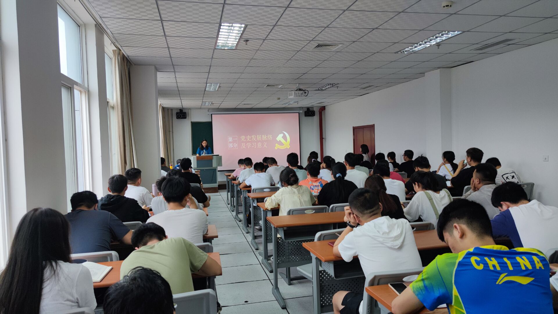 刘朋花同志分别从党史发展脉络及学习意义、革命时期和建设时期、社会主义现代化建设时期与改革开放、步入新时代,踏上新征程这四个方面为大家介绍党史的光辉历程。“历史是最好的教科书,中国革命历史是最好的营养剂。学习党史、国史,是坚持和发展中国特色社会主义、把党和国家各项事业继续推向前进的必修课。在对历史的深入思考中做好现实工作,更好走向未来,不断交出坚持和发展中国特色社会主义的合格答卷”是习近平总书记对我们的教导。要明白中国梦的实现途径是必须走中国道路,这就是中国特色社会主义道路;弘扬中国精神,这就是以爱国主义为核心的民族精神和以改革创新为核心的时代精神;凝聚中国力量,这就是全国各族人民大团结的力量。
