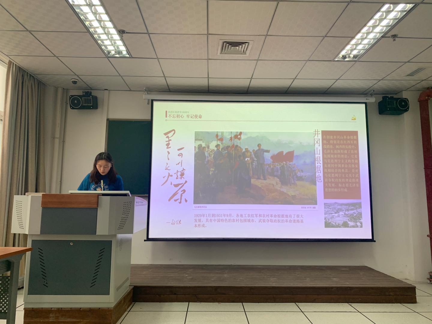 为深入学习贯彻中国共产党在近百年艰辛的奋斗史,不断积累党建经验、斗争经验、执政经验、社会主义建设经验等,按照党总支统一安排,6月2日下午,威廉希尔williamhill中文员工党支部组织全体员工党员于在1#409开展“不忘初心、牢记使命”党史专题学习教育。专题党课由员工第二党支部副书记刘朋花主持并主讲。