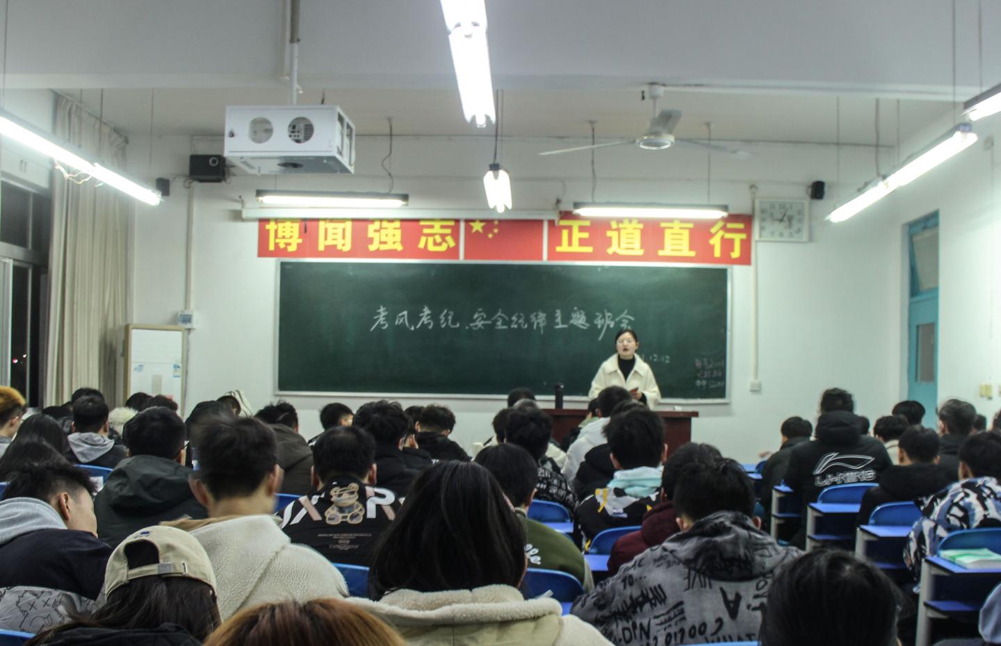 各班级围绕考试作弊行为、违纪处理后果和安全教育三个方面开展班会,通过学习反面典型案例和师生互动等多种方式,进一步深化了同学们对诚信考试和人身安全重要性的理解。同时,辅导员还就宿舍安全、电信诈骗以及疫情防控等多方面问题提出相应的防范措施以及解决方法。同学们均表示会积极备考,诚信考试和加强自身的安全防范意识。