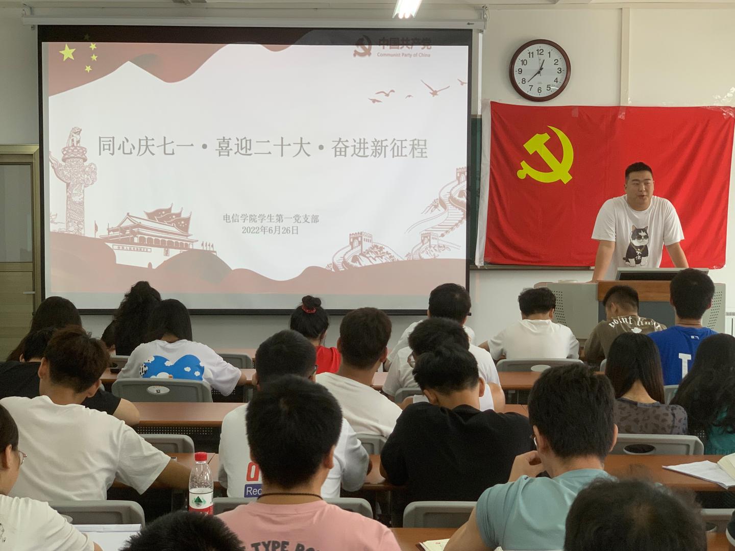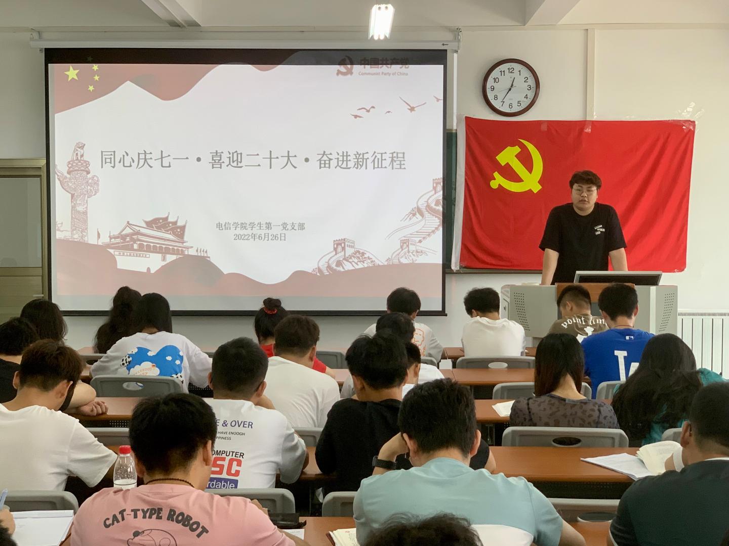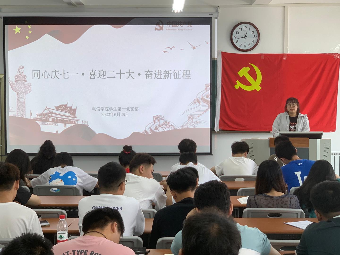 为庆祝中国共产党成立101周年,推动党史学习教育常态化长效化,深入学习贯彻省第十四次党代会精神,迎接党的二十大胜利召开,6月26日下午,威廉希尔williamhill中文员工第一党支部于丹江校区3-204教室举办了“同心庆七一·喜迎二十大·奋进新征程”主题党日活动。活动由支部书记孙凯主持,支部全体党员参加。