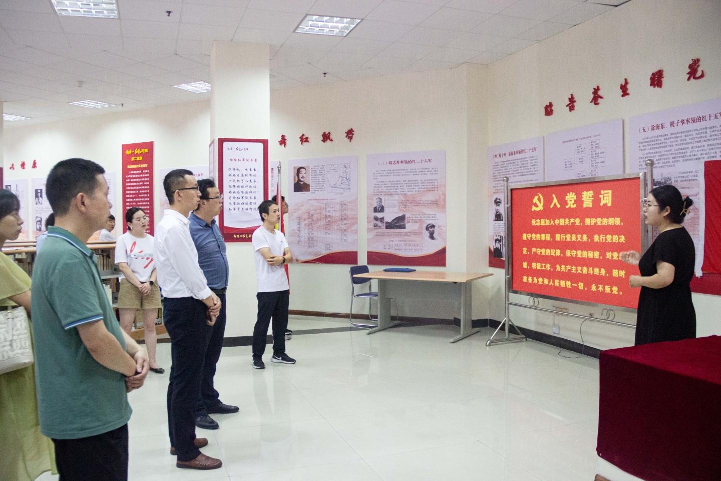 在红色文化资料馆,曹娜老师专题为全体党员们讲解了五支红军转战商洛和中原野战军突围到商洛的革命事迹。大家观看了革命史料和图片,翻阅了馆藏的红色书籍。