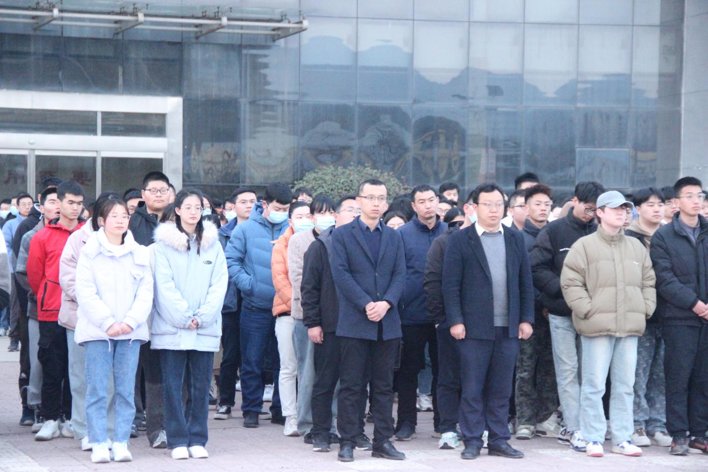 早晨7点,参加升旗仪式的师生列队整齐、精神饱满,伫立在升旗台前。在全院师生的注目礼下,国旗护卫队迈着铿锵有力的步伐护送国旗至升旗台。7点10分,在雄壮的国歌声中,鲜艳的五星红旗冉冉升起,迎风飘扬。全体师生神情肃穆,齐唱国歌,向庄严的国旗表达最崇高的敬意。
