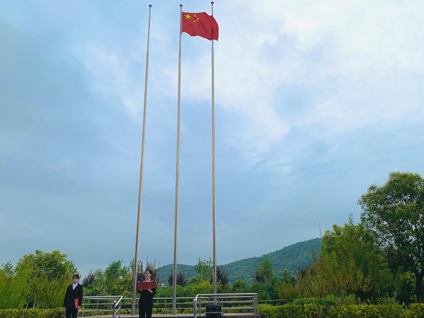早晨6点50分,参加升旗仪式的师生列队整齐、精神饱满,伫立在升旗台前。在全体师生的注目礼下,国旗护卫队迈着铿锵有力的步伐护送国旗至升旗台。7点10分,在雄壮的国歌声中,鲜艳的五星红旗冉冉升起,迎风飘扬。全体师生神情肃穆,齐唱国歌,向庄严的国旗表达最崇高的敬意。