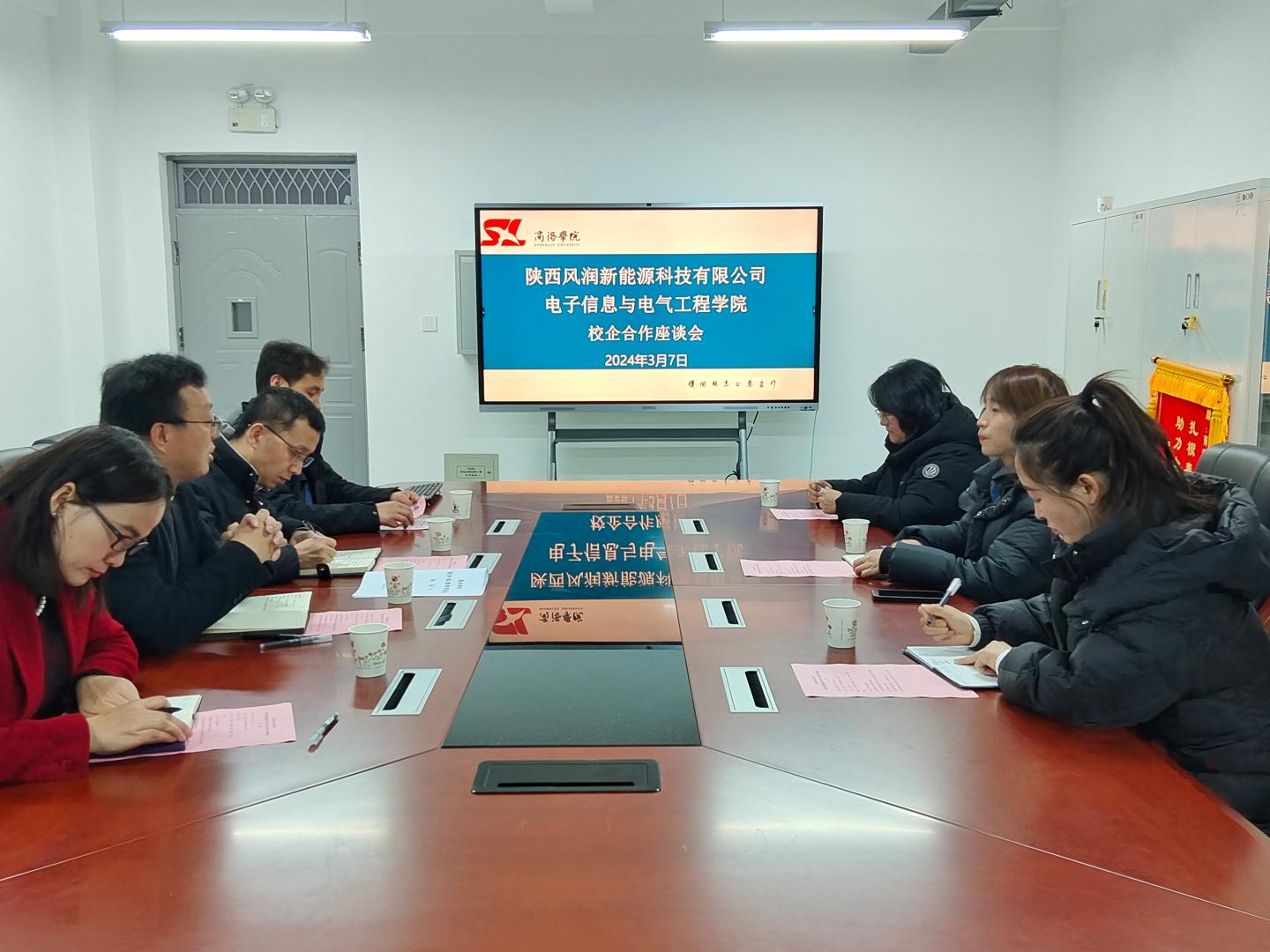 公司负责人对陕西风润新能源科技有限公司的到访表示热烈欢迎,并从公司学科和专业发展、人才培养计划、毕业生就业情况等分别做了详细介绍;陕西风润新能源科技有限公司代表就公司发展现状、业务范围、招聘计划及薪资待遇等方面的情况进行了说明。随后,经理袁训锋代表公司同陕西风润新能源科技有限公司签订了威廉希尔williamhill校外实践教学基地协议书、党委书记赵永平代表公司同陕西风润新能源科技有限公司签订了威廉希尔williamhill老员工就业创业基地建设协议书并授牌。