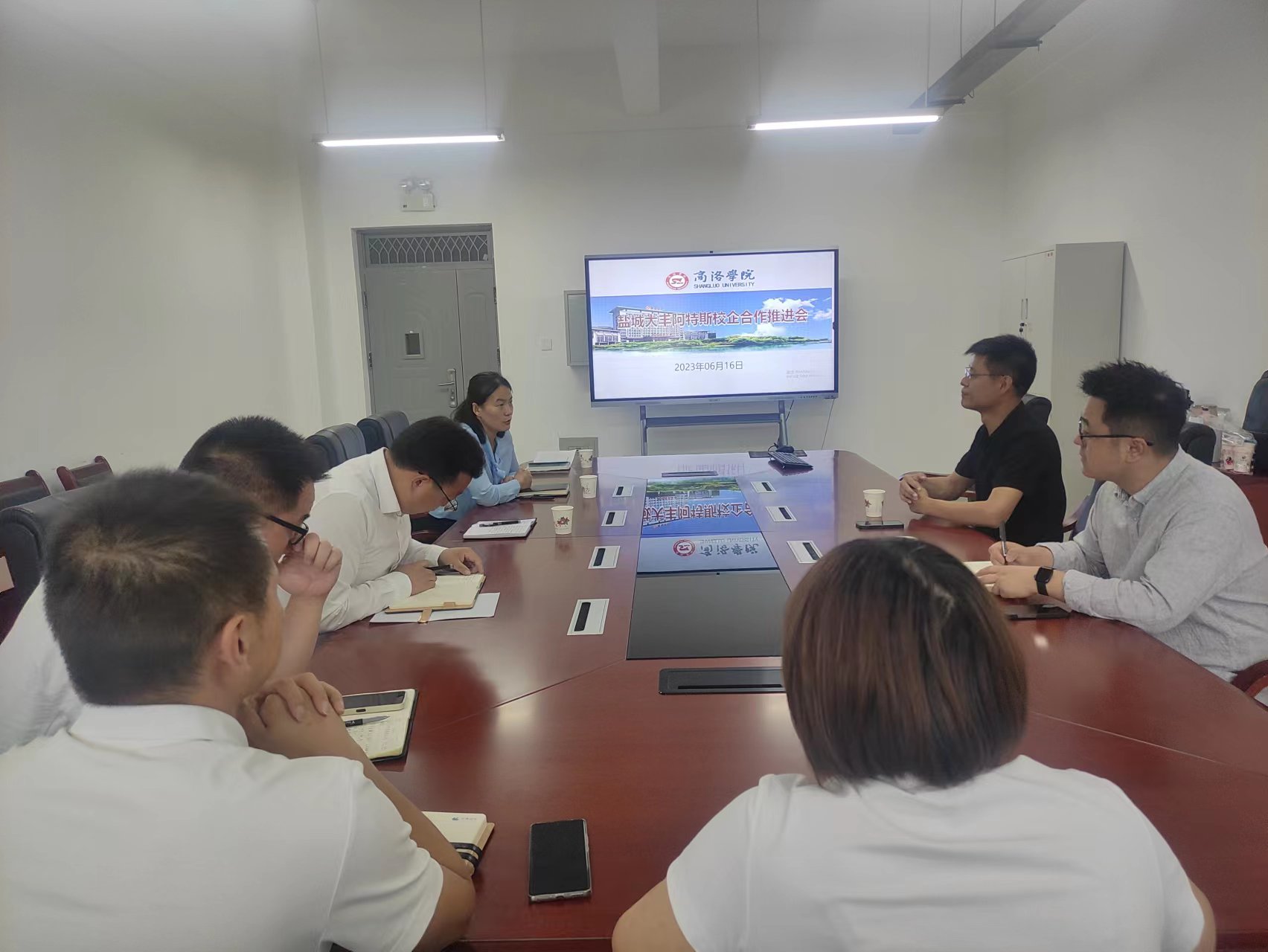 宣讲会结束后,公司与阿特斯公司举行了校企合作推进会。会上,袁训锋介绍了公司的办学理念、专业建设、课程建设和产教融合情况,希望深化同阿特斯公司的校企合作,对接企业人才需求,不断提升人才培养质量,产出更多校企合作成果。赵永平介绍了公司近几年的员工就业情况,就如何对员工精准赋能,员工到企业就业零距离,深化校企合作等方面提出了构想。李亚文就校企合作办学、毕业生实习实训等方面同阿特斯公司进行了深入交流。缪苏城和彭小飞对所需人才进行了简要介绍,希望以此次洽谈为契机,推动校企合作朝更高质量的方向发展。