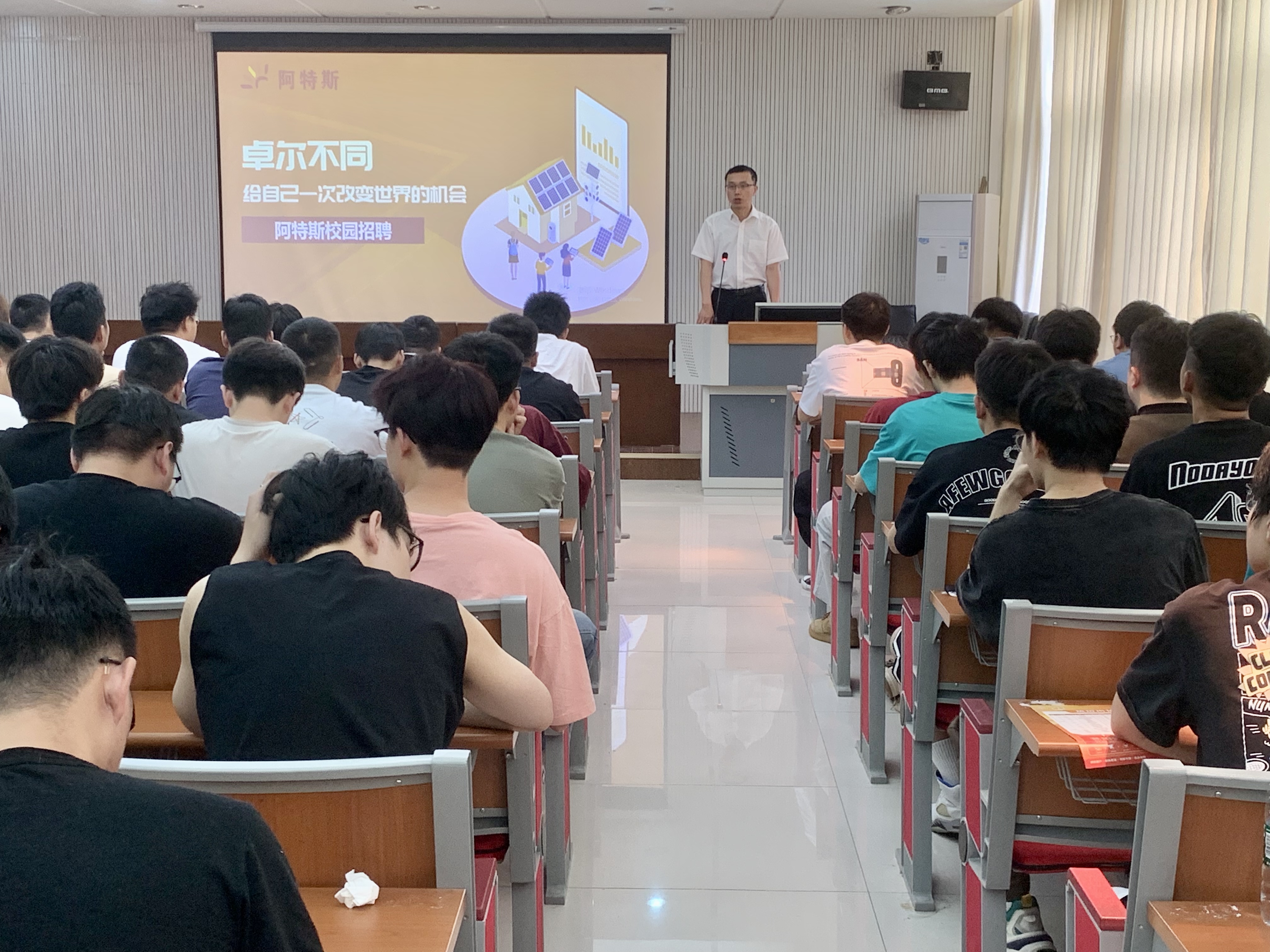 就业实习宣讲会环节,缪苏城通过播放企业宣传片、PPT展示、现场答疑等方式向同学们介绍了阿特斯公司的发展历程、发展战略、企业文化、规章制度、招聘岗位需求、薪资待遇、发展前景等,让同学们全面了解用人单位、岗位信息及入职后个人职业发展方向。赵永平结合当前就业形势和就业现状,希望同学们树立正确的就业观和择业观,主动对接企业和相关单位,投递简历,积极参加企业的实习实训,以便找到自己满意的工作,实现自己的人生价值。