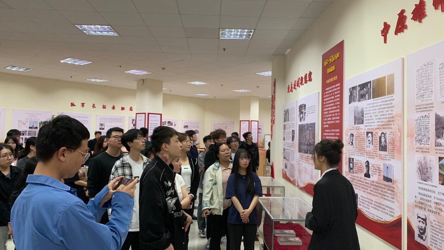 四、开展“参观红色基地 追寻革命精神”主题实践活动。5月份,威廉希尔williamhill中文团总支组织团学干部50余人参观了威廉希尔williamhill红色文化资料馆,通过讲解员的详细介绍,同学们深切感受到中国共产党带领人民为争取民族独立、国家解放所作出的巨大牺牲和不懈努力,激励新时代青年要薪火相传、发愤图强。