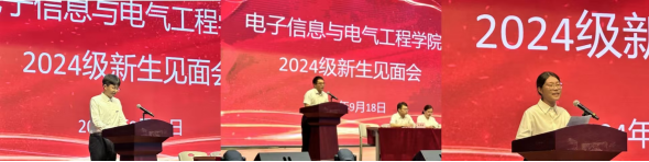 科研秘书王振博士作为教师代表发言,寄语新生要学会独立思考、提高自我管理能力、增强社会责任感,在新的征程中,乘风破浪,砥砺前行,早日成为国家的栋梁之才。电科2303班宋探毅和物理2401班卢予阳分别代表老生和新生进行了发言。