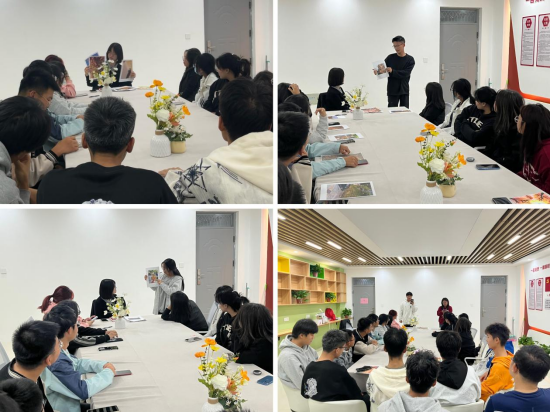 本次活动所展示的作品均为员工们在课余之时停下匆匆脚步,以绘画或摄影形式定格秋的身影,记录下来商院秋天的斑斓色彩。21名同学依次对作品的创意灵感进行分享交流,邓皓楠、王艺璇为大家带来《我们的歌》、《如愿》两首歌曲表演,张艺婕作活动总结,并为参与活动的各位同学赠送活动纪念品。