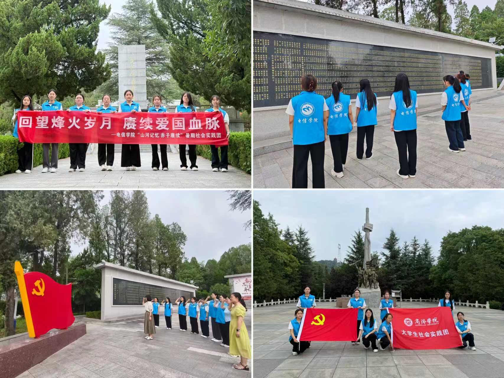 在承载历史记忆的革命烈士纪念馆前,杨烨彤为大家讲述了英雄故事,感受他们在烽火岁月中为家国大义挺身而出、舍生取义的无畏勇气。在庄严肃穆的商洛市烈士英名录墙前,队员们以青春之名立下使命誓言,用实际行动践行新时代青年的责任与担当。在党旗旁,实践团成员举起右拳,铿锵有力的誓言在烈士陵园上空回荡,这不仅是对革命先辈的深情告慰,更传递着当代青年学子传承革命精神、勇担时代使命的坚定决心。